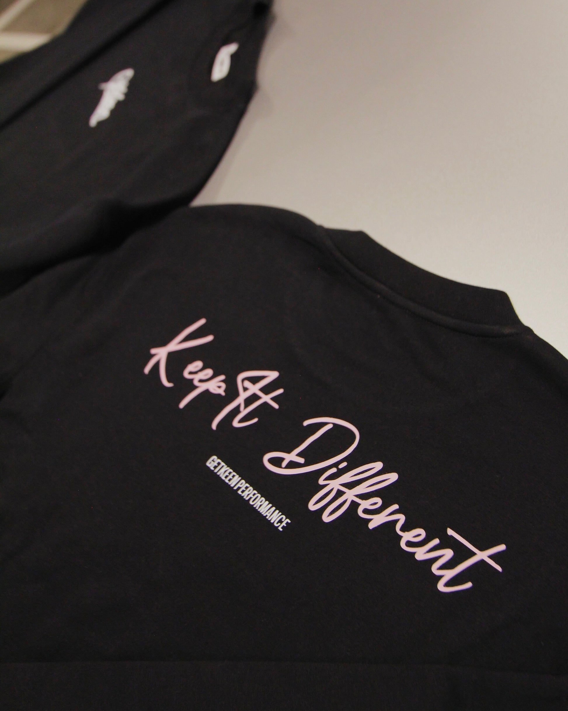 Make a statement in this piece that refuses to whisper. where goals come to reality, where dreams become reality. Splashed with bold black and pink text, it's your ticket to standing out. Confident, and unapologetically you— KEEP IT DIFFERENT.
